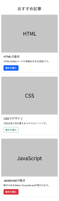 - カードの中に画像・見出し・本文・ボタンを組み合わせる構造を理解する