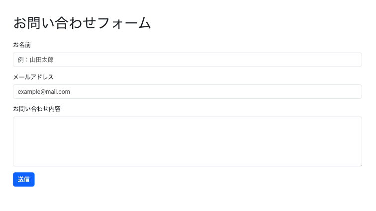 - お名前、メール、お問い合わせの3つの入力欄