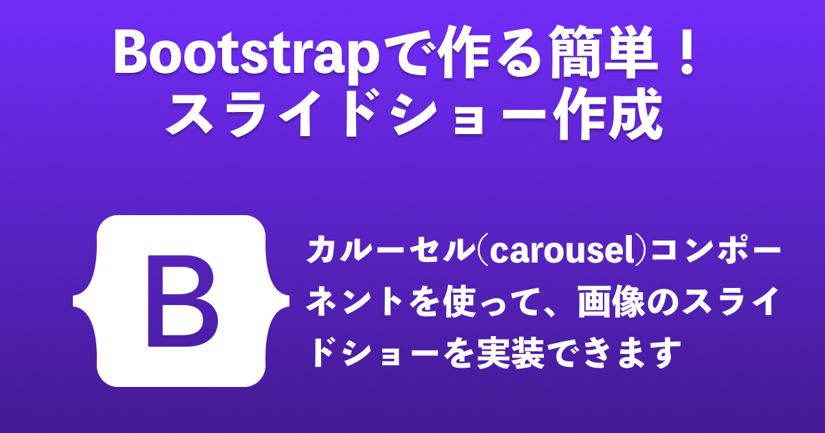 - Bootstrapのカルーセル(carousel)コンポーネントを使って、画像のスライドショーを実装できるようになる。