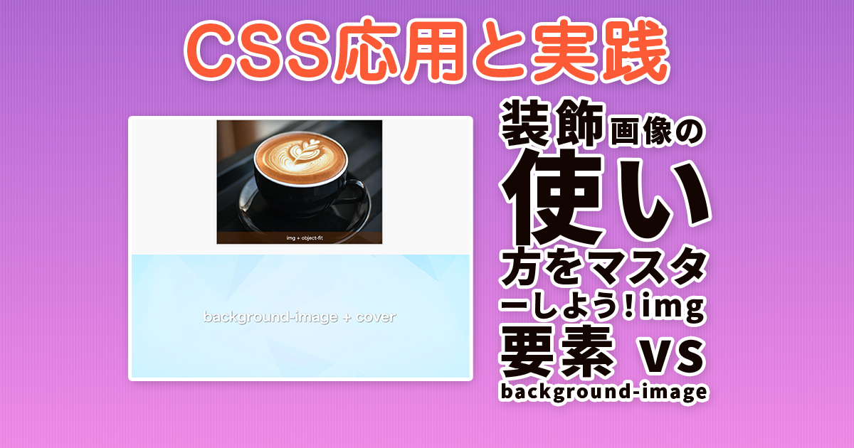 <img>とbackground-imageの違いと使い分けを理解するobject-fit,aspect-ratio,background-size,background-positionなどの使い方を学ぶ- 画像が「切れる・余白ができる・はみ出す」などのよくある問題をCSSで解決できるようにする