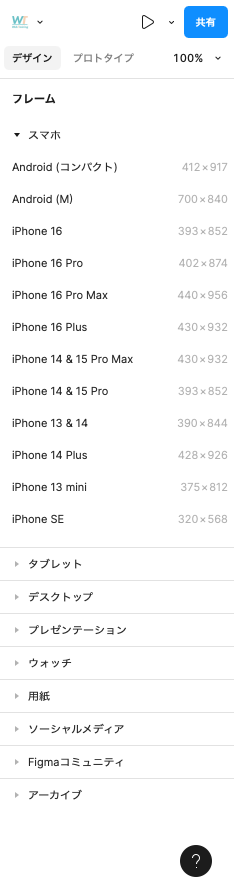 ワイヤーフレームも、バナーも、UIデザインも、すべてこのキャンバス上で作成します。