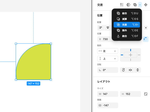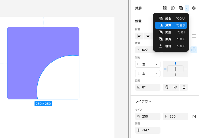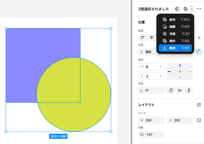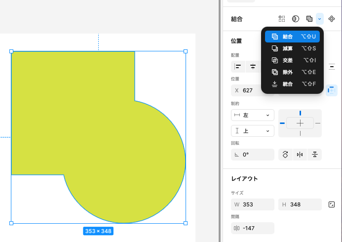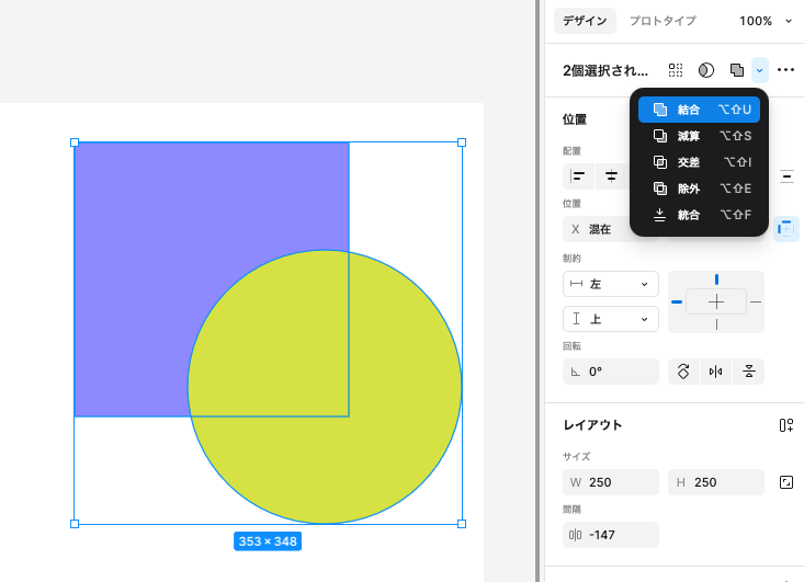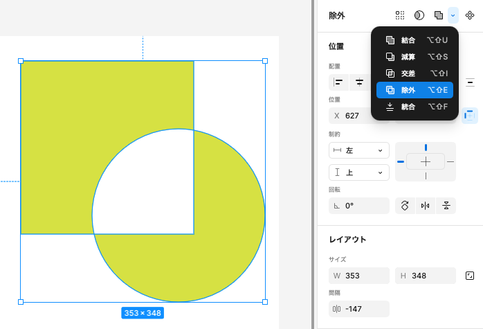 Figmaのパワフルな図形合成機能が ブール演算 です。複数の図形を選択し、「合体したり、切り抜いたり」が可能です。
