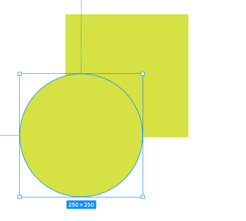 両方とも、250px*250pxの四角形・正円を描いておきます。色は任意です。選択ツールで囲むようにドラッグするか、shiftキーを押しながらクリックすると2つの図形が選択できます。(1つではできませんので、必ず複数選択します)右側のプロパティパネルのブール演算