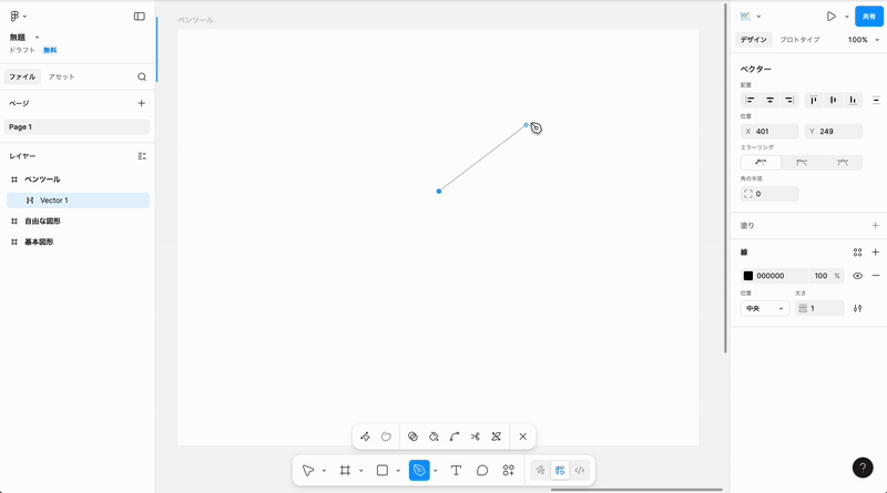 Illustratorのペンツールと似ていますが、FigmaはUIデザインに特化したシンプルな使い心地が特徴です。