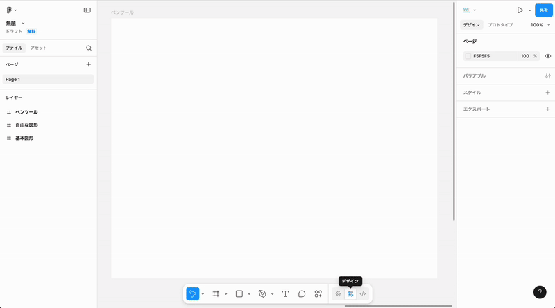 最初から曲線を描くのは、ペンツール操作では若干難しいので、Figmaは、直線を描いてから曲線に変えることもできます。
