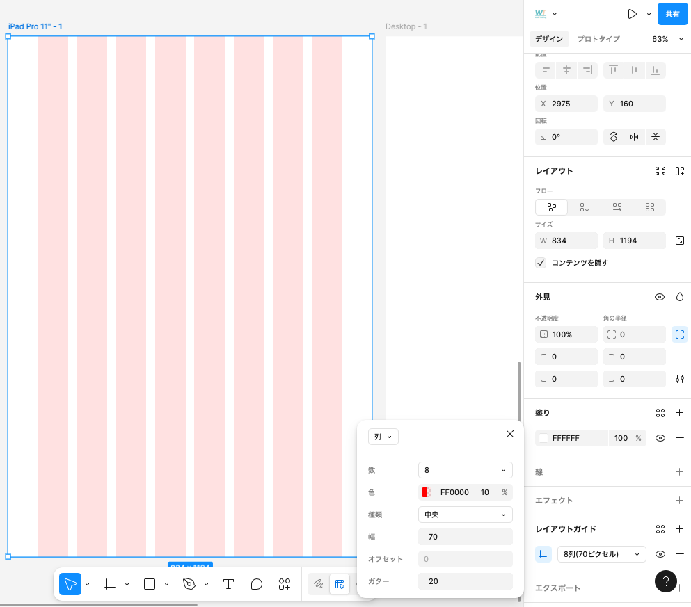次に、フレーム内のレイアウトを整えるためのレイアウトガイド(Layout grid) を追加します。