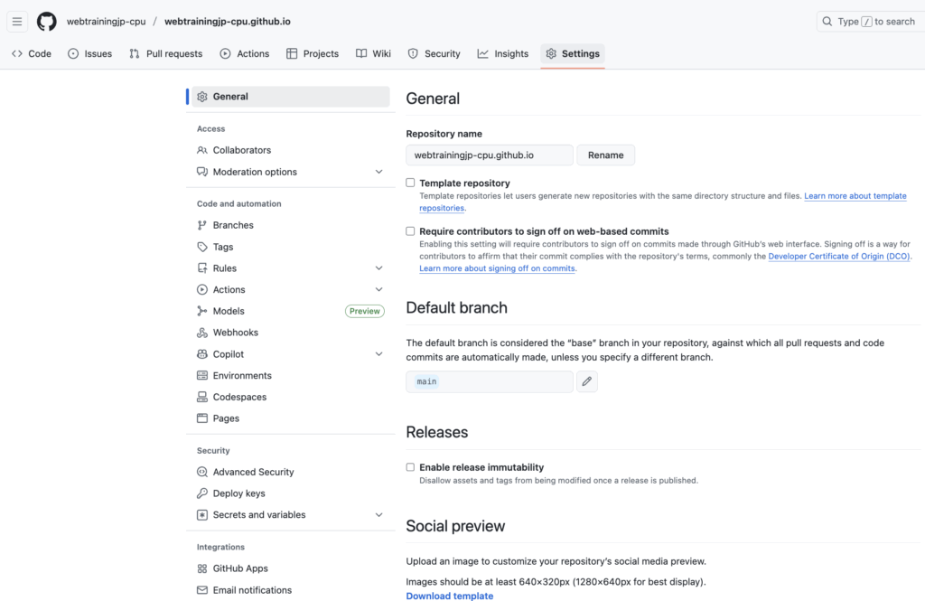 2. 自分のリポジトリ(例:webtrainingjp-cpu.github.io)を開く