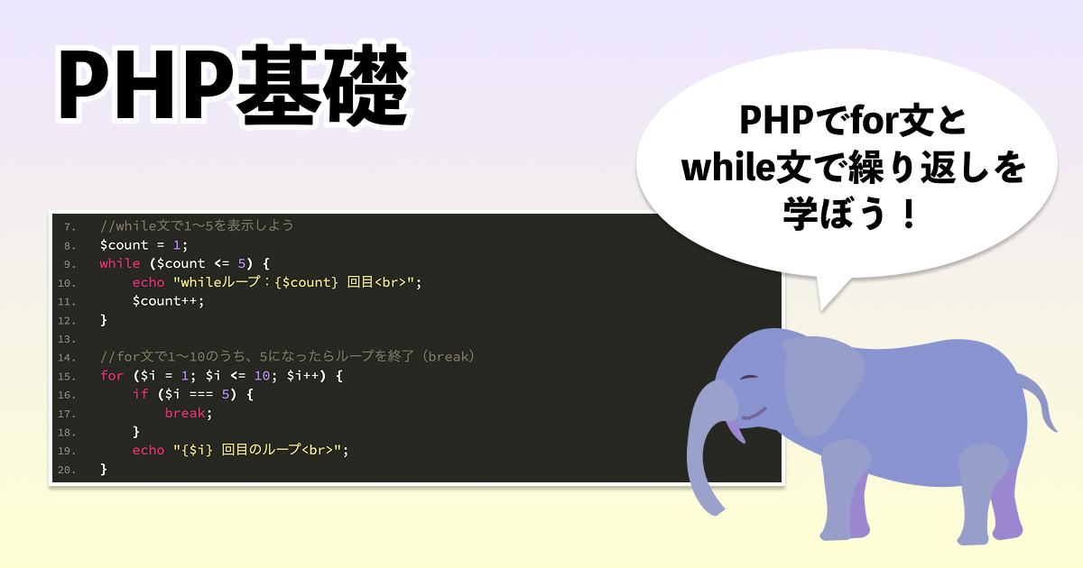 for文とwhile文を使って、同じ処理を何度も繰り返す方法を身につけよう!