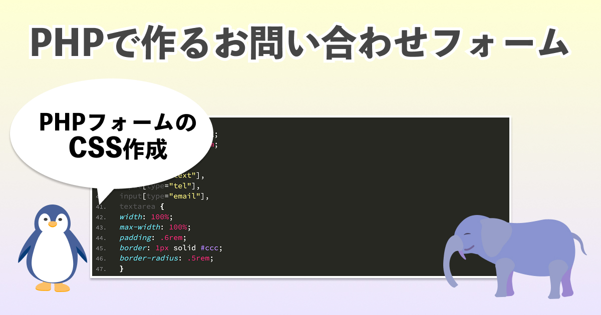 HTML作成後、見た目の調整CSSを作成します。php-contact/ フォルダの中にstyle.cssを作成します。