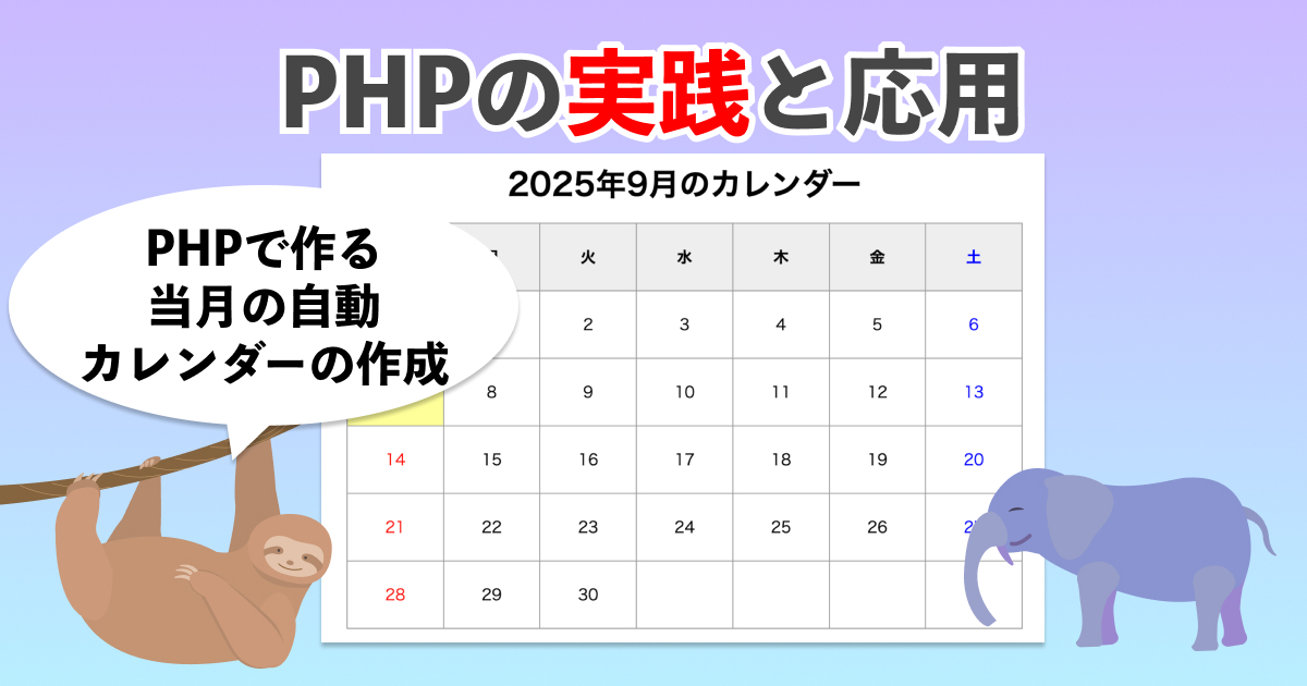 PHPでその月のカレンダーを自動生成するプログラムを作っていきましょう。