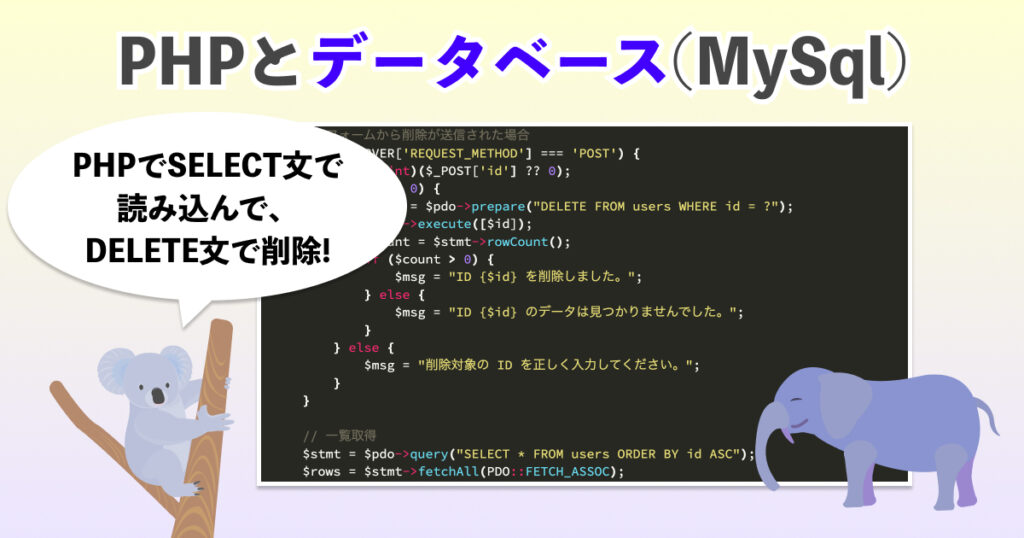 PHPでSELECT文で読み込んで、DELETE文で削除しよう
